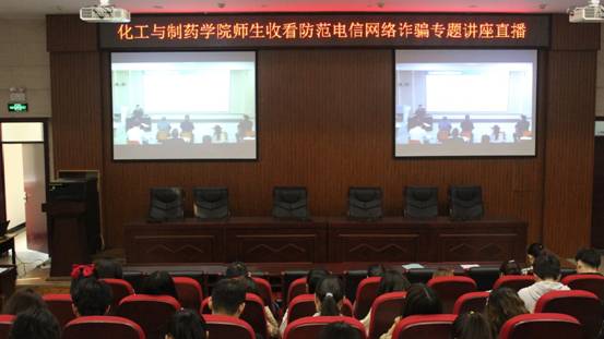 4月8日下午3:00,化工与制药公司组织师生在工科5-112报告厅收看防范电信网络诈骗专题讲座直播,院团委副书记成一林老师、19级辅导员胡雅雯老师、主要员工干部和员工党员参加了此次活动。
