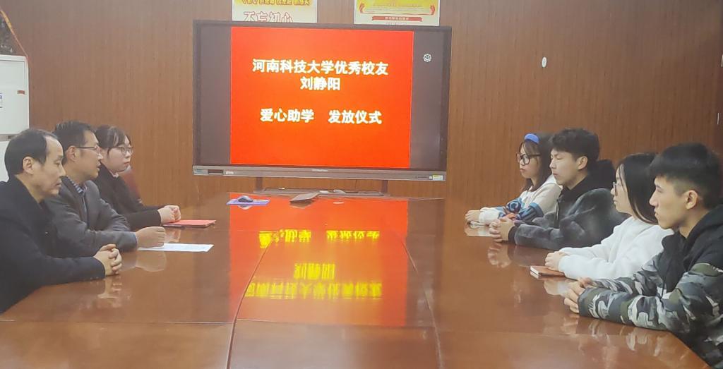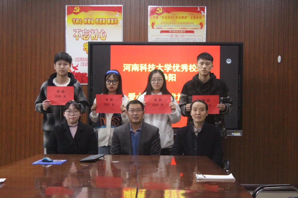 2021年11月14日下午,在工科5-227会议室举行化工与制药公司优秀员工爱心助学发放仪式。本次爱心助学活动由化工与制药公司优秀员工、河南树仁仪器进出口有限公司总经理刘静阳提供助学金1万元,资助公司4名家庭经济困难员工。经理马军营、公司党委副书记马东辉、2019级辅导员胡雅雯和受资助的4名同学一同参加了此次发放仪式。