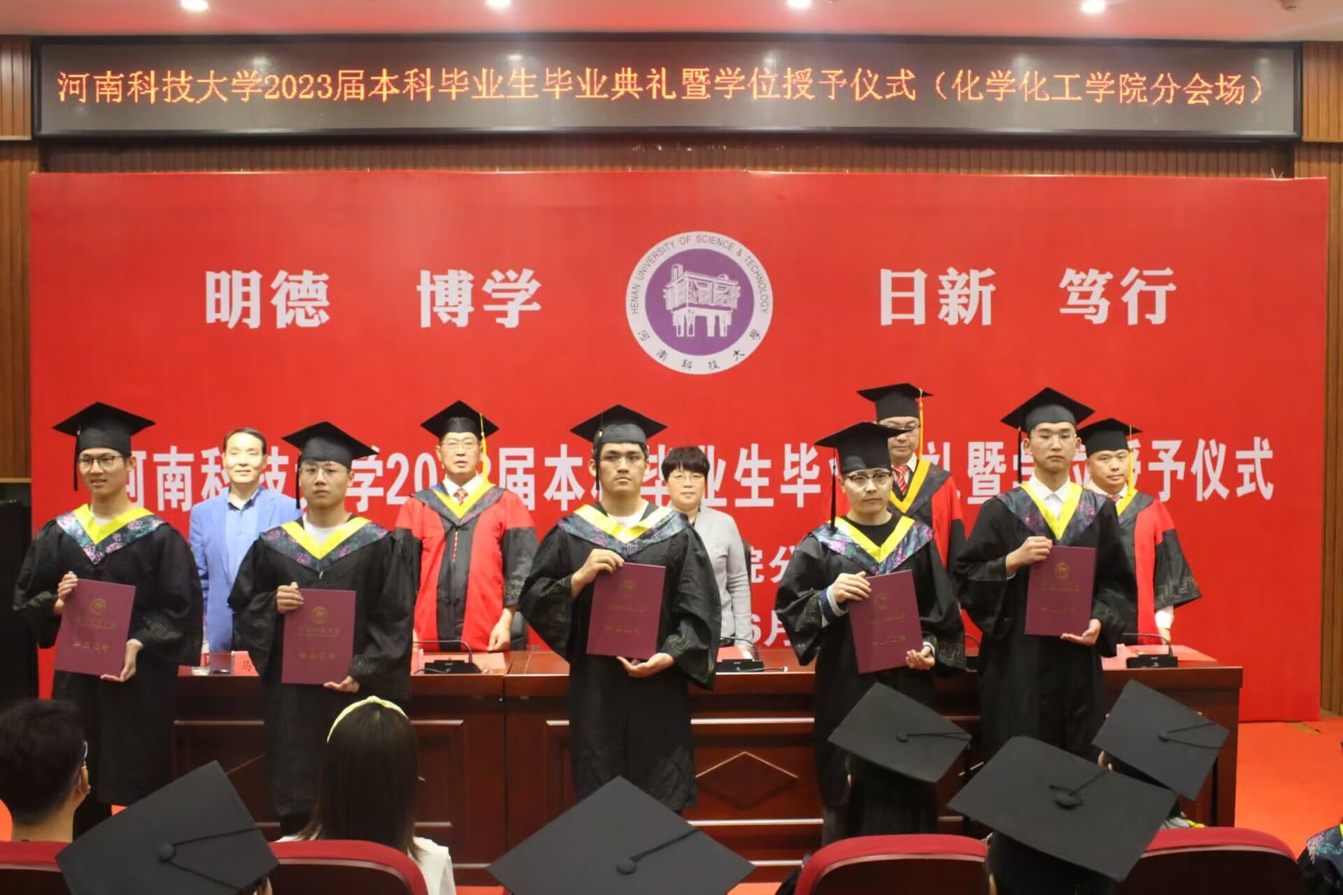 毕业典礼在庄严的国歌声中拉开序幕。首先,副经理魏学锋宣读betway西汉姆联平台毕业生资格审查及学位授予情况。接着,公司领导班子为毕业生代表颁发毕业证书,经理马军营、副经理魏学锋、副经理卢伟伟为获得学士学位的毕业生正冠拨苏,授予学位,并合影留念。随后,毕业生代表杨雅男和孔维臻发表了毕业感言,表达了对母老师、母校的感激以及对未来的美好展望。然后,教师代表化工系副主任李欣老师和环境工程系副主任张瑞昌老师发言,对全体毕业生表达了殷切希望和美好祝愿。最后,经理马军营教授对2019级毕业生取得的成绩给予肯定,并向同学们作出嘱托:希望毕业生们把个人理想融入国家和民族的事业中,肩负起时代赋予的责任,在激情奋斗中,绽放青春的光彩。最后,在庄严的校歌中,betway西汉姆联平台2023届本科生毕业典礼暨学位授予仪式圆满落幕。